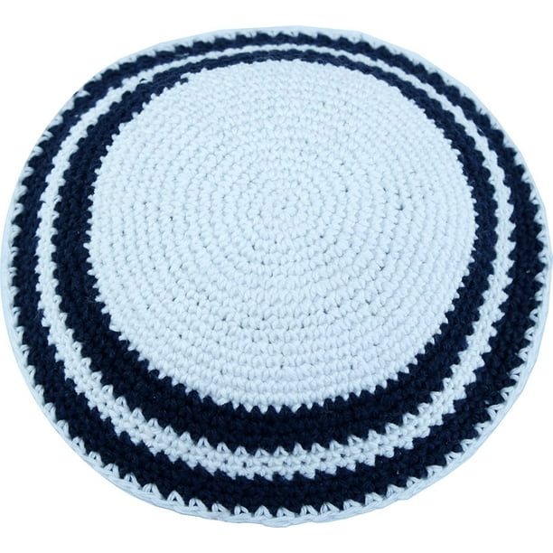 White Dark Blue 17cm Dmc 100 Knitted Cotton Kippah Torah Chabad Yarmulke Walmart Com